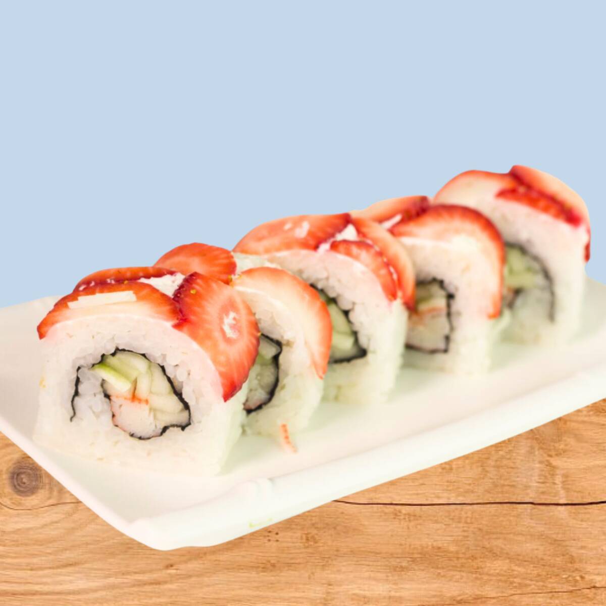 Por fuera: Phil y fresas. Por dentro: camarón queso crema y aguacate.