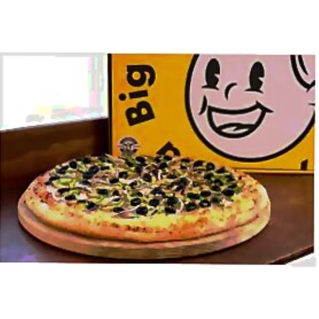 Pizza familiar de 40 cms de champiñones, aceitunas negras, cebolla morada y pi,iemto verde con un toque de especias italianas