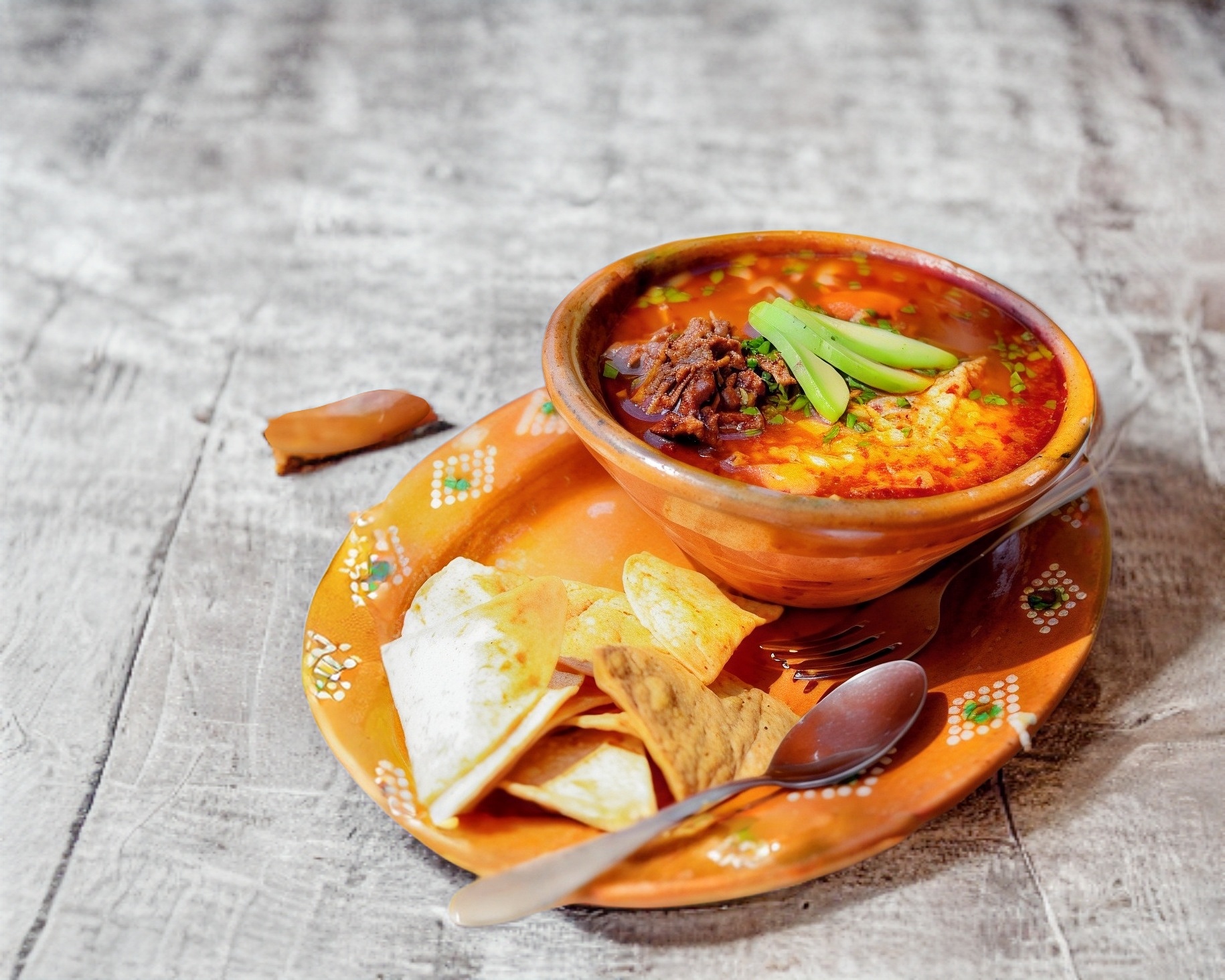 Caldo con carne.