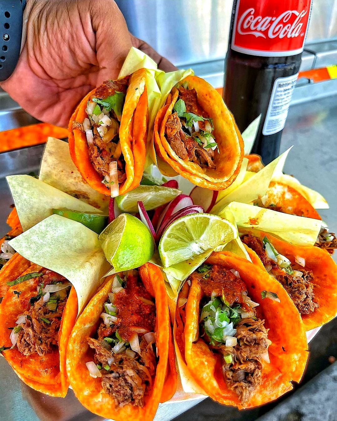 Paquete de 3 tacos y consome de birria en choperillo de 200 ml