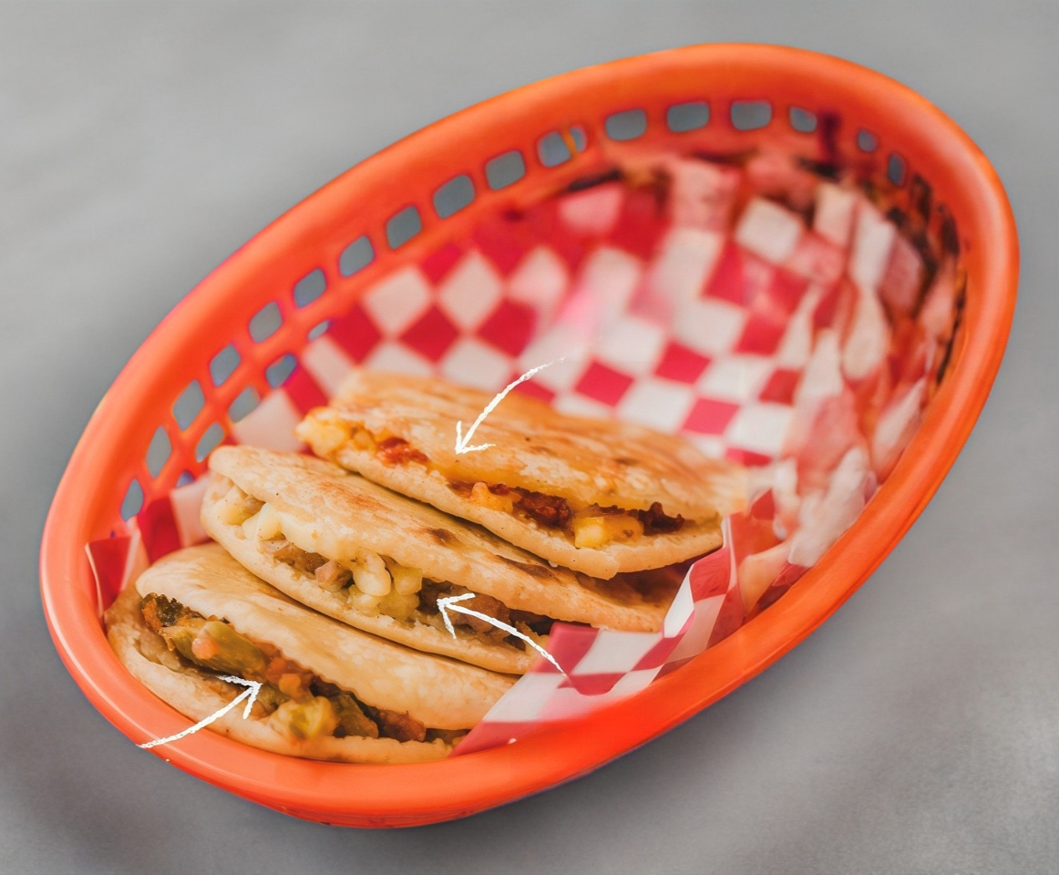 Un bocol (tortilla gruesa de masa de maíz mezclada con manteca) rellena de