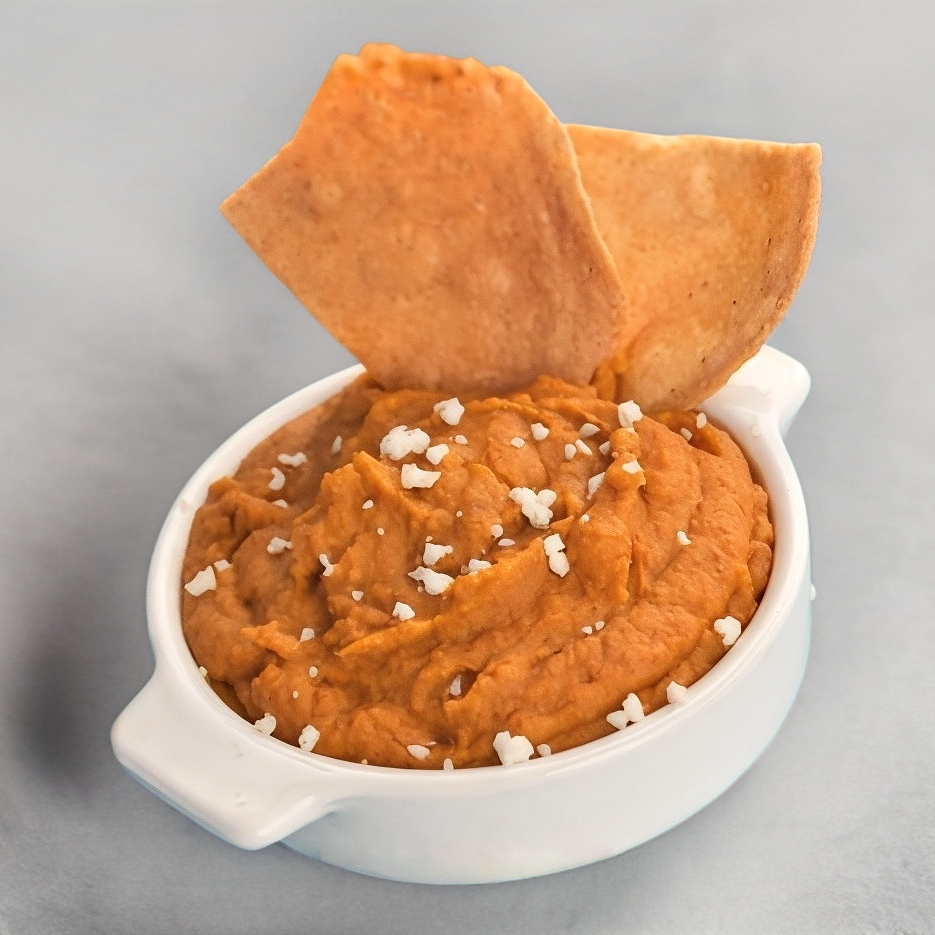 Una orden de frijol acompañado de queso.