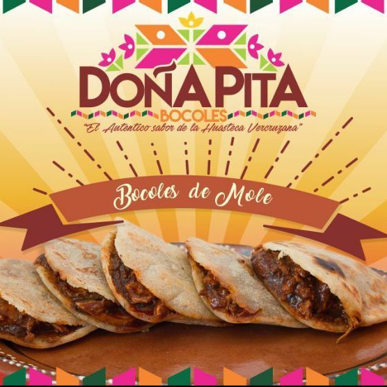 Un bocol (tortilla gruesa de masa de maíz mezclada con manteca) rellena de pollo en mole.