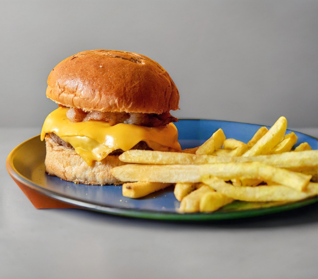 150 GR DE CARNE TOP SIRLOIN, QUESO AMARILLO, TOCINO, TODO DENTRO DE NUESTRO PAN PAPA, ACOMPAÑADO DE 100GR DE PAPAS A LA FRANCESA