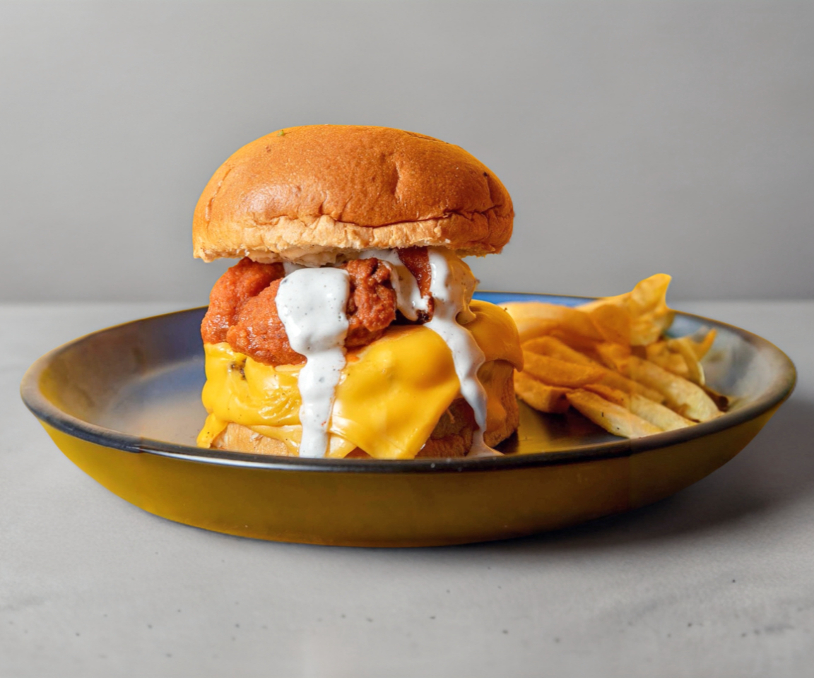 120 GR DE DELICIOSOS BONELESS BAÑADOS EN TU SALSA FAVORITA, QUESO AMARILLO, TOMATE, CEBOLLA, LECHUGA, TODO DENTRO DE NUESTRO PAN PAPA, ACOMPAÑADO DE 100GR DE PAPAS A LA FRANCESA