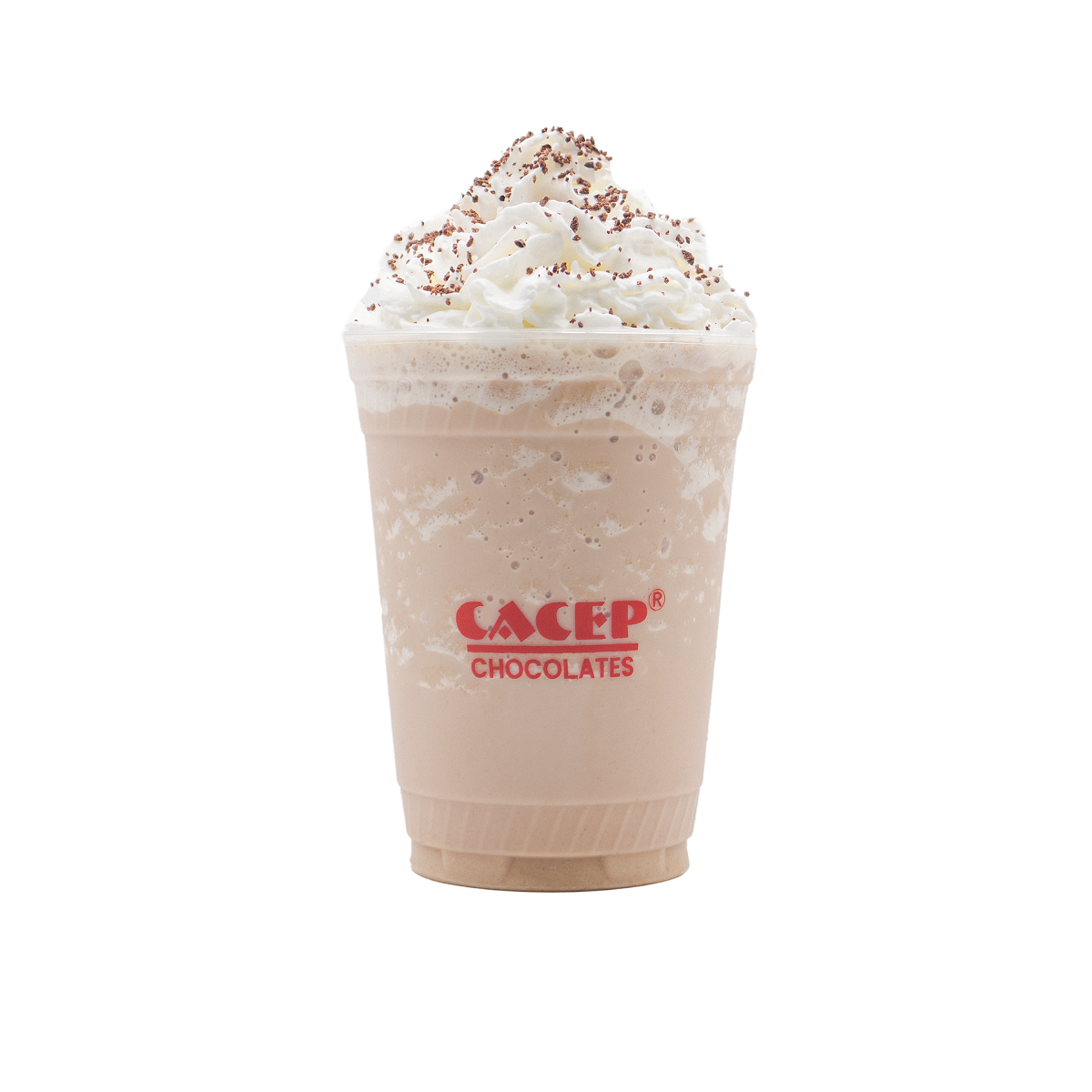 Atrévete a probar el chocolate real en un delicioso frappé de polvillo clásico. Incluye crema batida y granilla de cacao.