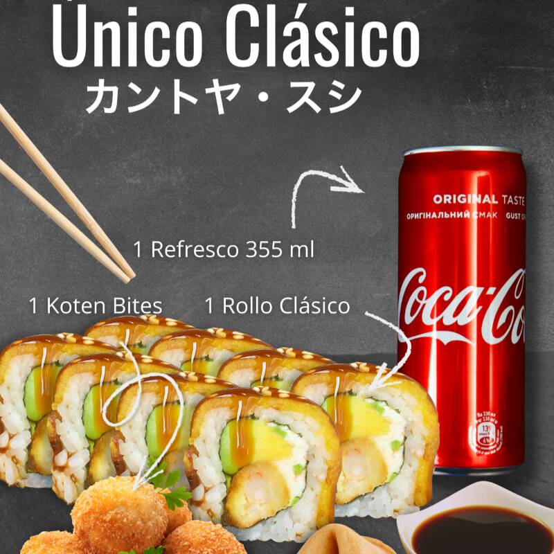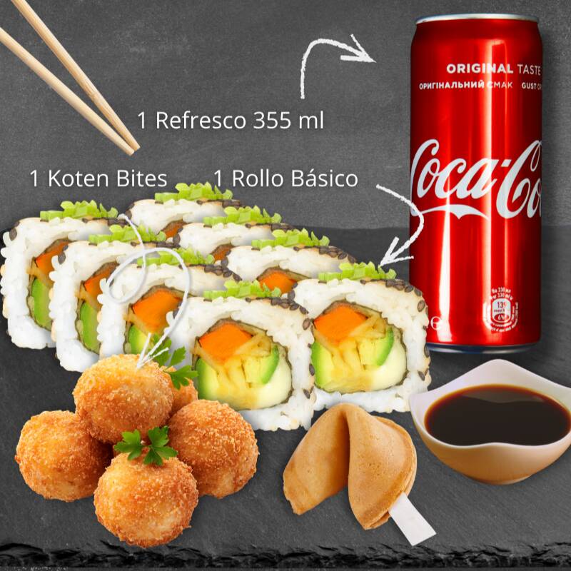 Rollo Básico*1 + Koten Bite*1 + Galleta de La Suerte*1 + Coca Cola 350 ML*1
