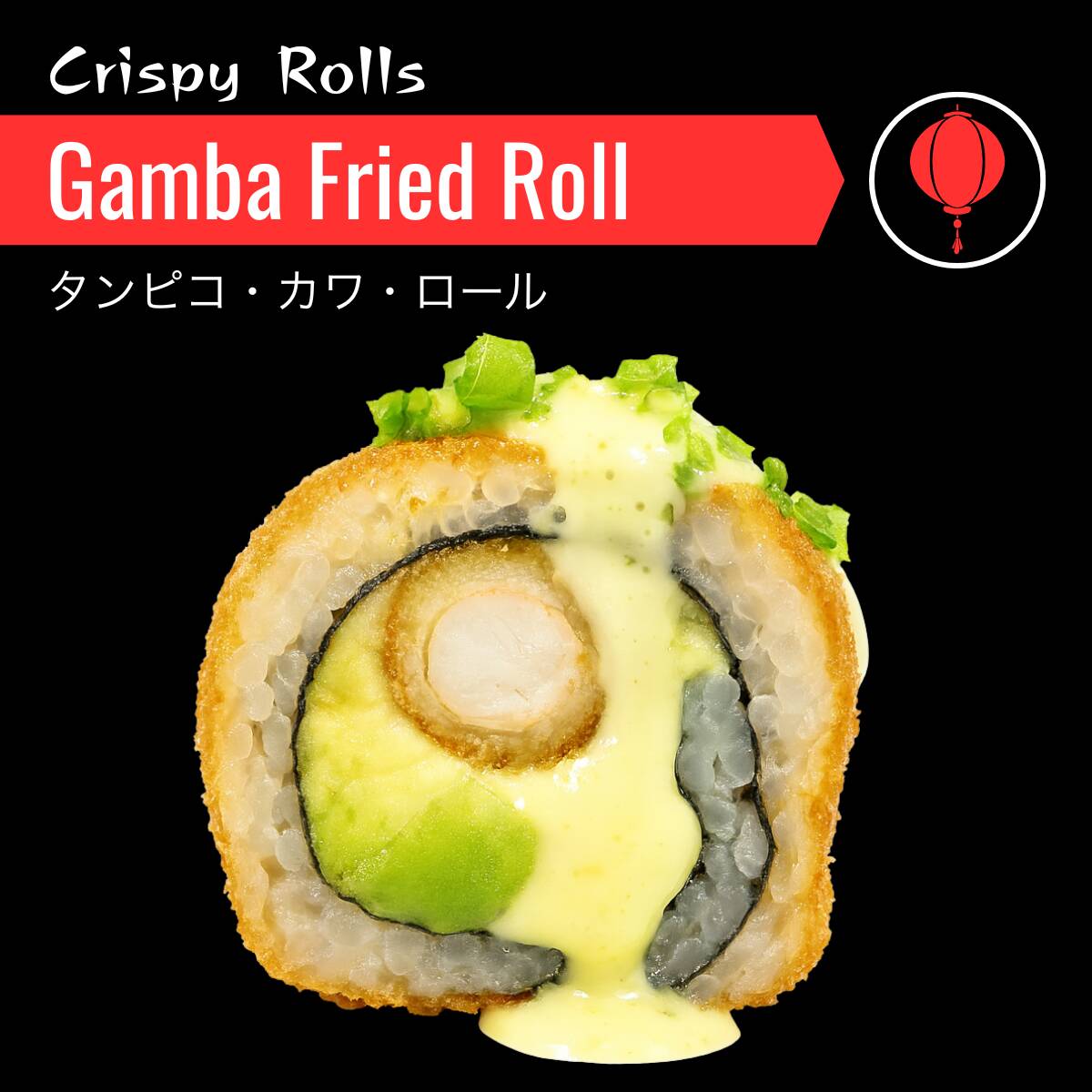 Rollo de sushi de 8 pz, empanizado con panko, relleno de camaron, queso menonita y aguacate, con salsa fuji, salsa anguila y cebollín.
