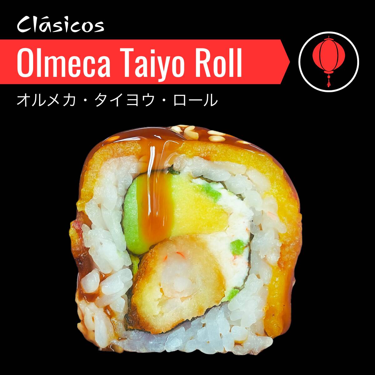 Rollo de sushi de 8 pz. Relleno de Queso Menonita y Camaron Empanizado, forrado de Aguacate, Tanuki (Tempura frita), Cebollin y Ajonjolí negro.