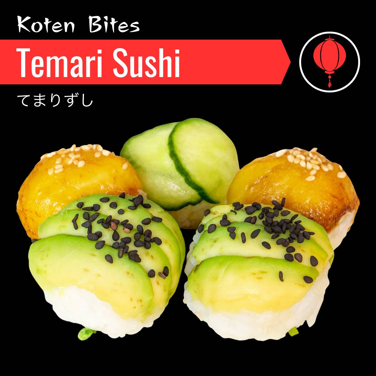 Bolas de Arroz Shari, 5pz, relleno de Philadelphia, cubiertos de Aguacate, Plátano Frito y Pepino, con Ajonjolí.