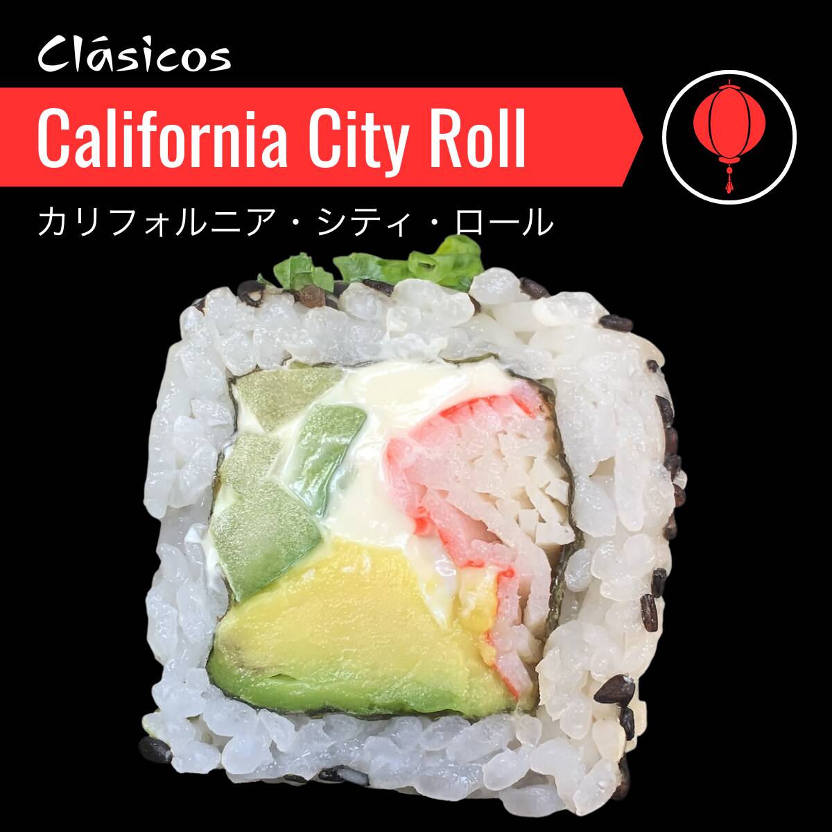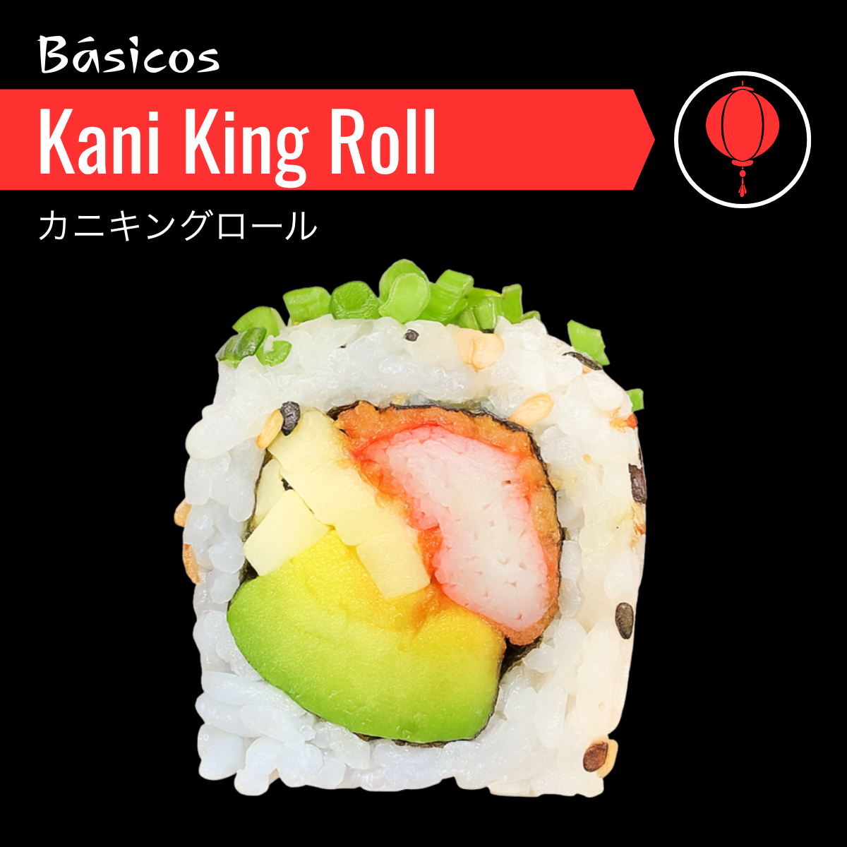 Rollo de Sushi de 8 pz, de sabor cremoso y a marisco, Relleno de Kanikama Tempura, Aguacate y Queso Menonita, cubierto de Ajonjolí Blanco y Negro con Cebollín.