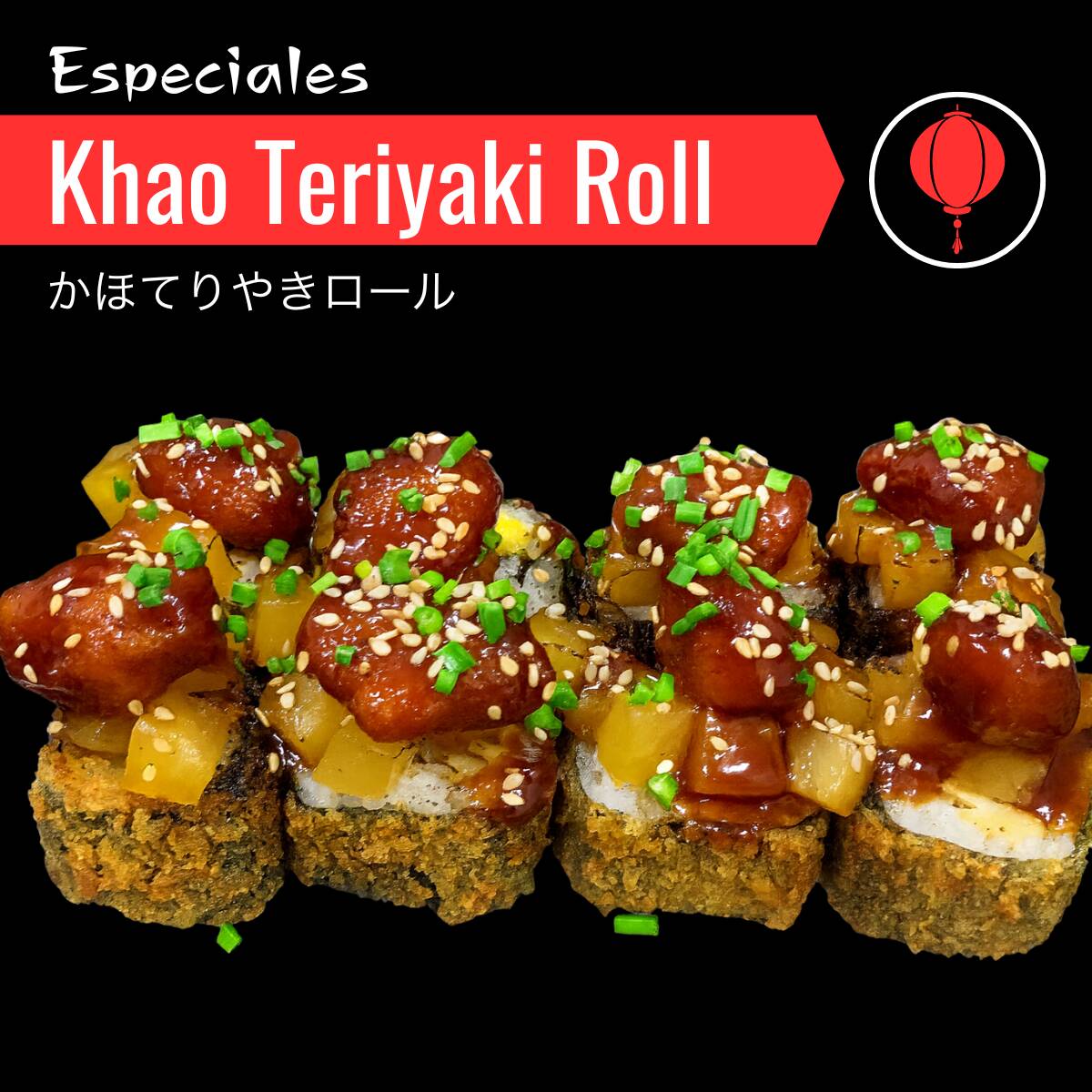Rollo de Sushi de 8 pz, con alga por fuera, empanizado, relleno de Pollo a la plancha, Piña, Tocino, cubierto de Piña Caramelizada, con Crispy Balls de Pollo bañadas en Salsa Teriyaki, con Cebollín y Ajonjolí Blanco.
