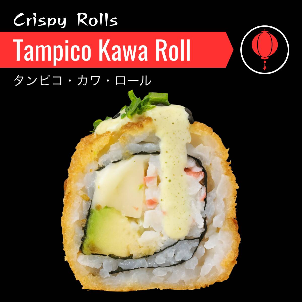 Rollo de sushi de 8 pz, empanizado con panko, relleno de tampico, aguacate y queso menonita, con salsa mayojalapeño y cebollín.