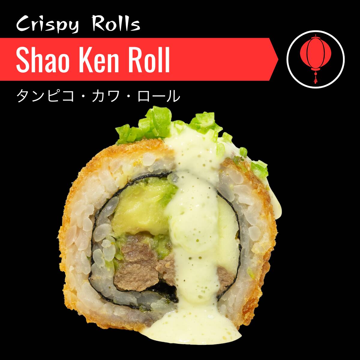 Rollo de Sushi de 8 pz empanizado con Panko, relleno de Kanikama, Aguacate, Queso Menonita y Camaron Empanizado, con un punto de Philadelphia con Crispy Balls de Camaron bañados en Salsa Spacymayo, con Cebollín y Ajonjolí Blanco.