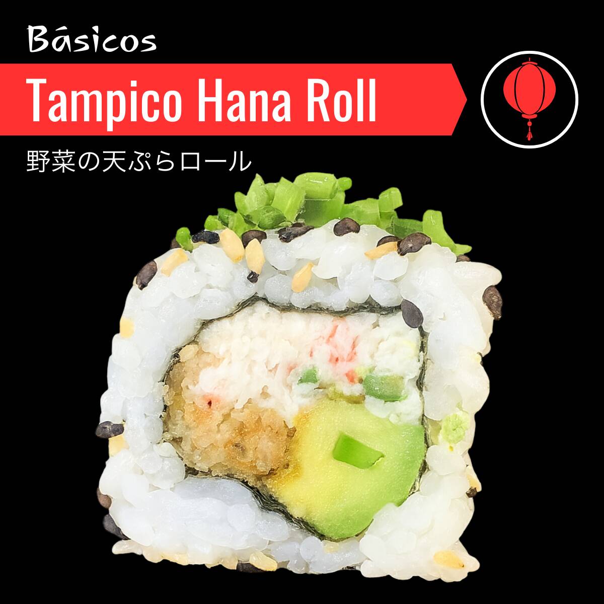 Rollo de Sushi de 8 pz, con un sabor Cremoso y Crujiente, relleno de Tampico, Tanuki y Aguacate. Cubierto de Ajonjolí Blanco y Negro con Cebollín.