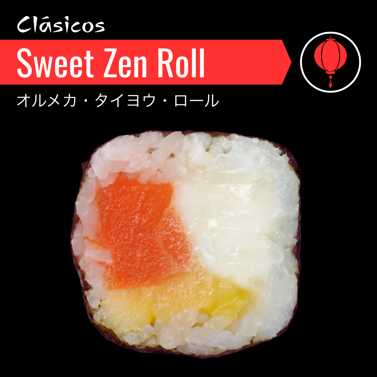 Rollo de Sushi de 8 pz, con un sabor ducel y cremoso, relleno de Piña, Pepino, Queso Philadelphia, cubierto de Ajonjolí Blanco y Negro con Cebollin.