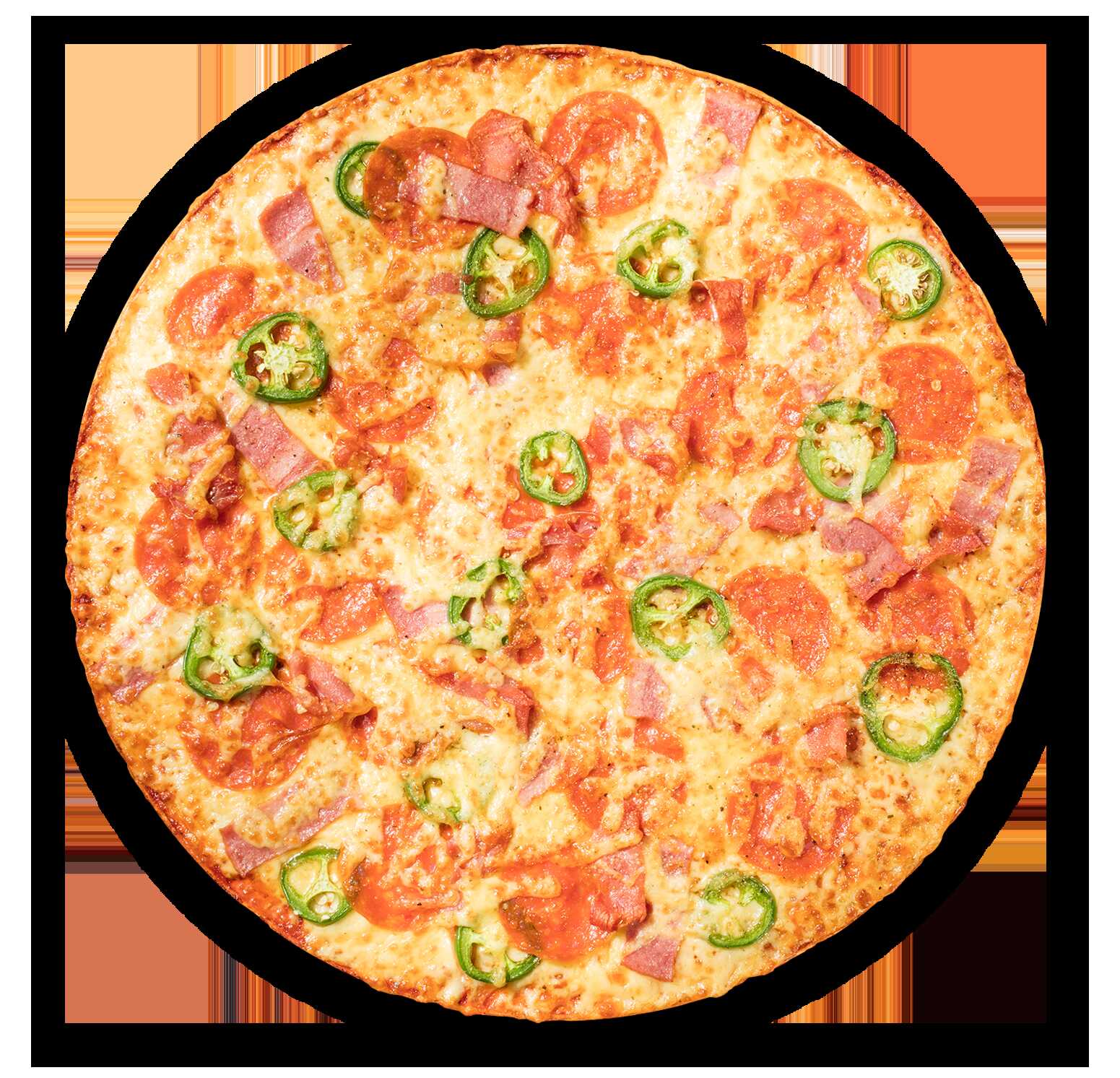 Jamón serrano, tocino de pavo, pepperoni y jalapeño. Incluye aderezo chipotle.