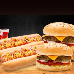 2 hamburguesas clásicas + 2 piezas de hot dog clásicos