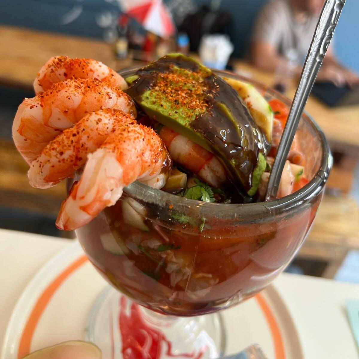 camaron curtido en jugo de limon bañado de salsas rojas de la casa