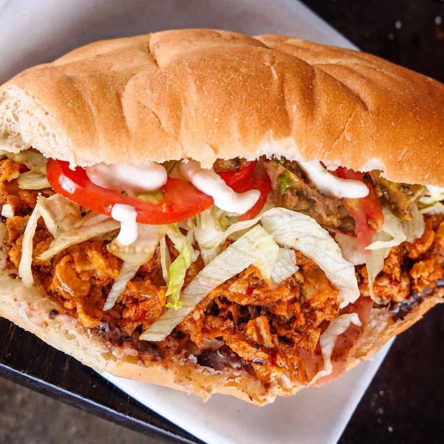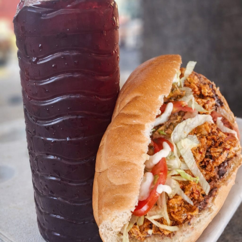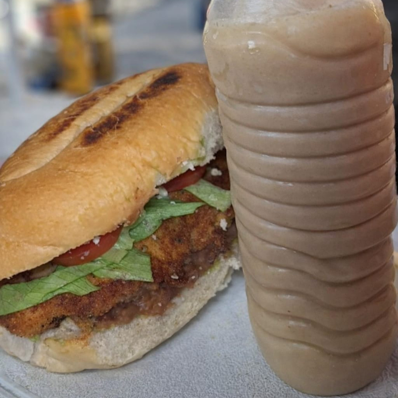 Deliciosa carne arrachera con queso, jamon, tocino y lechuga, incluye papas