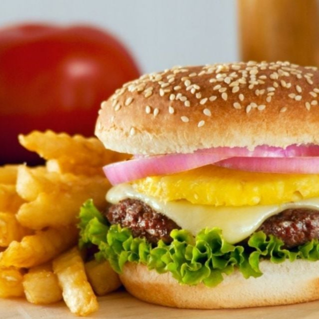 Delisiosa carne arrachera, jamon, queso, piña, tocino, lechuga, incluye papas