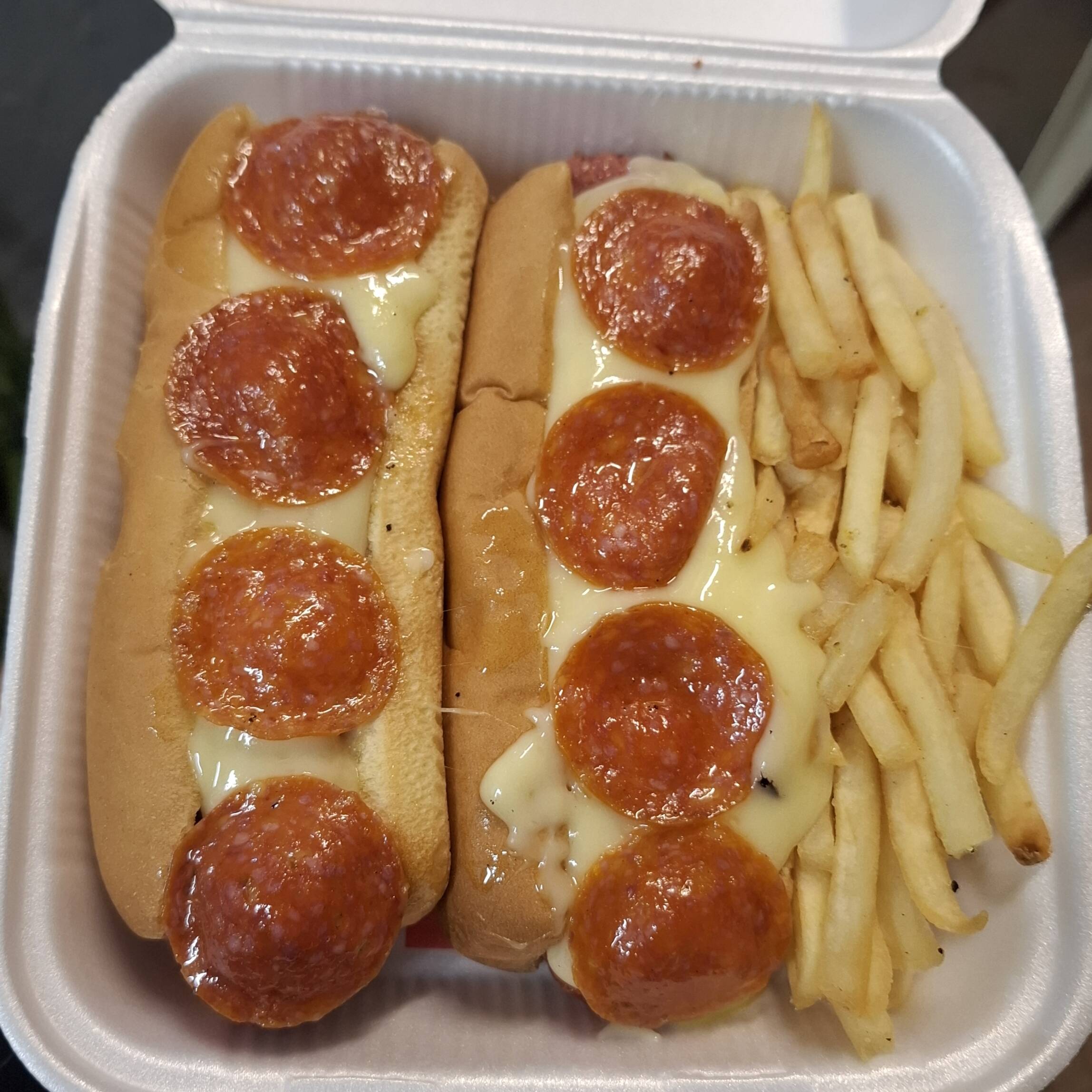 2 pz, (salchicha extra jumbo) mayonesa, mozarella, pepperoni