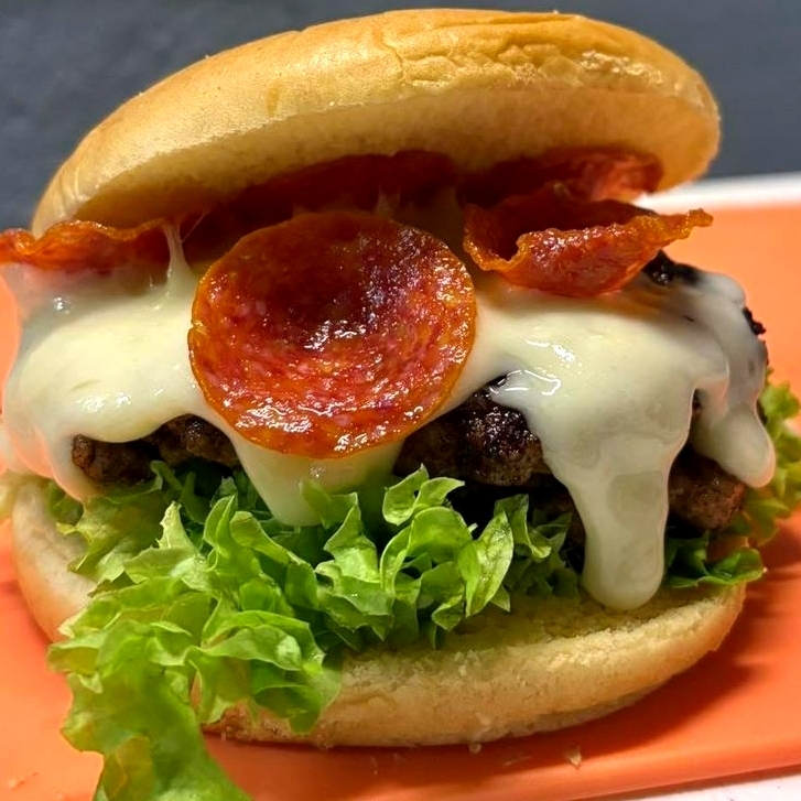 Carne de res (150 g), queso mozarella, pepperoni y lechuga