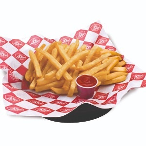 250 g de nuggets de pollo, acompañados de salsa cátsup y 100 g de papas francesas.