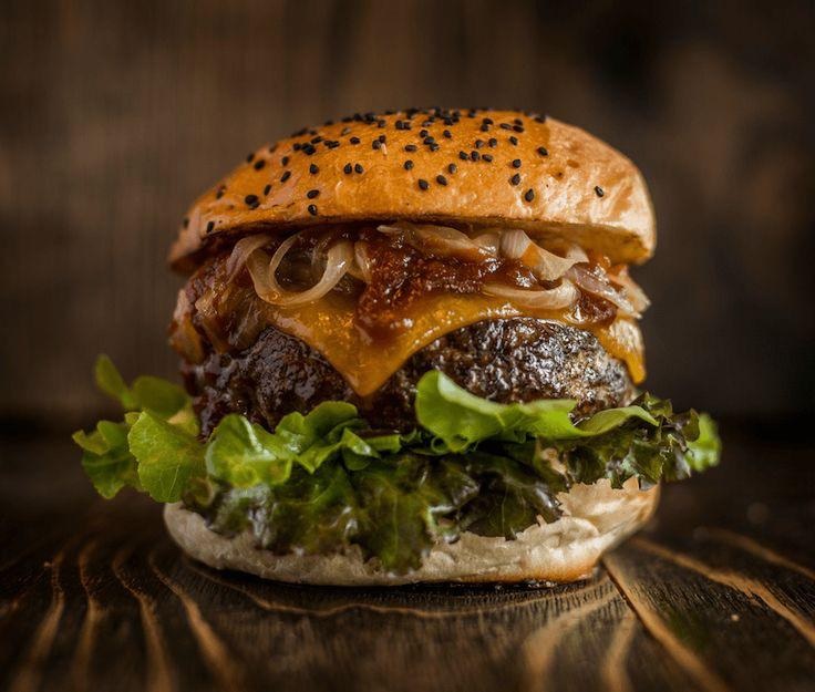 Carne de res, tocino, queso, cebolla, tomate, lechuga y papas.