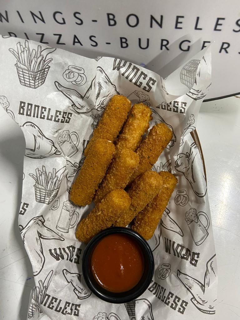 8 pzas de dedos de queso, acompañados de salsa de tomate.
