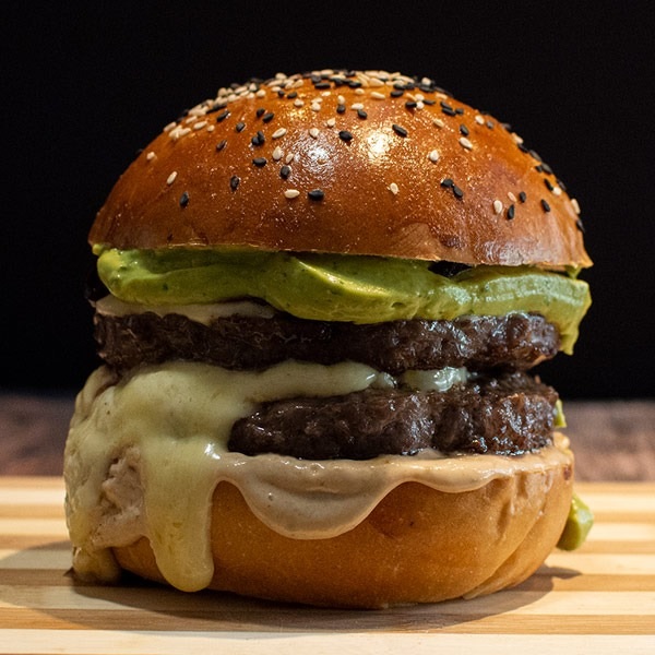 Doble carne de res, tocino, queso, cebolla, tomate, lechuga y papas.