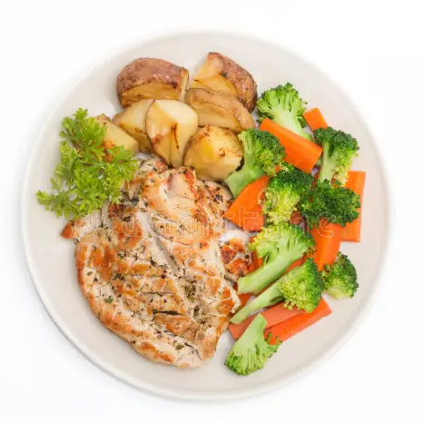 Milanesa de pollo verduras frijol papa