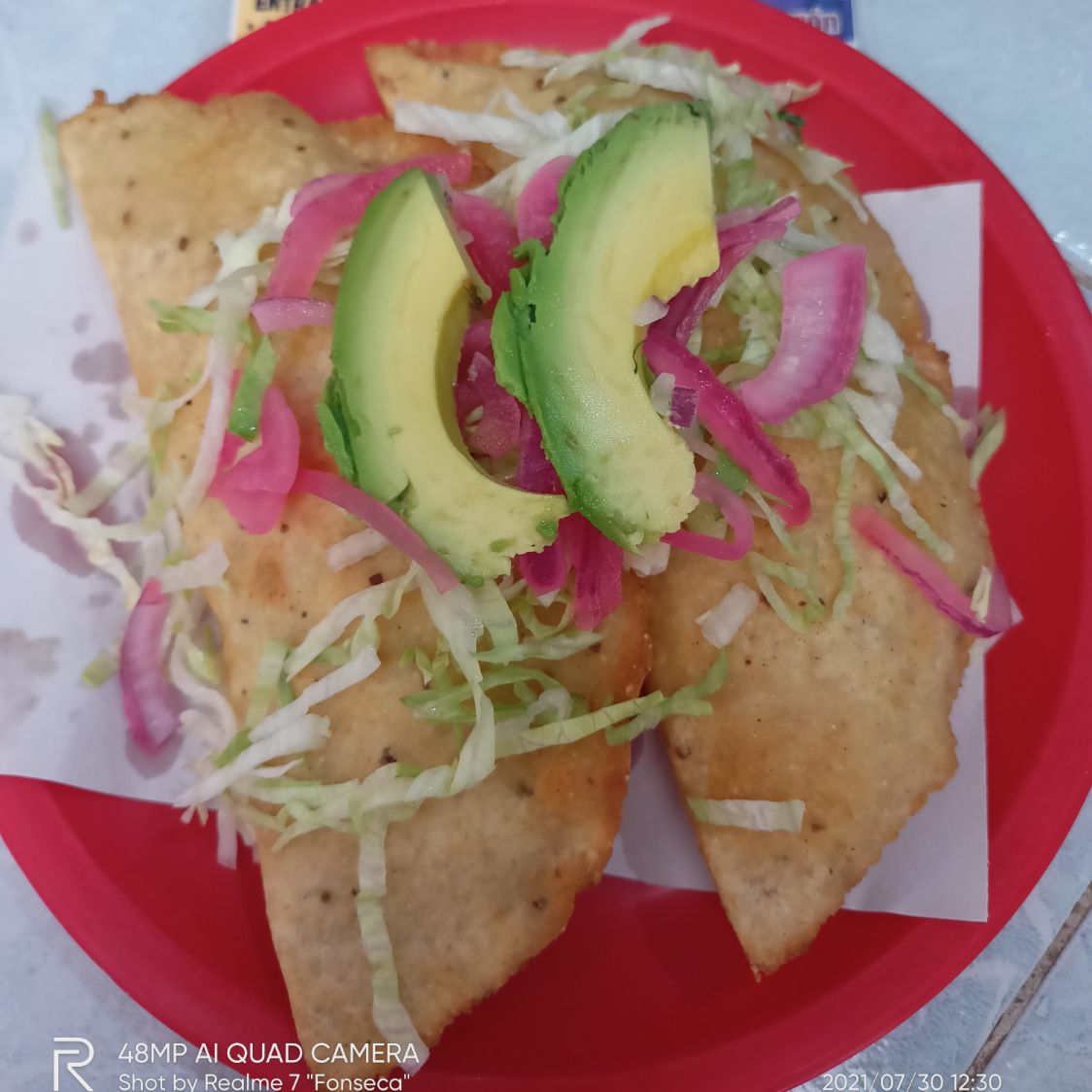 Con ensalada de tomate, pepino, cebolla, aguacate, limón y chile