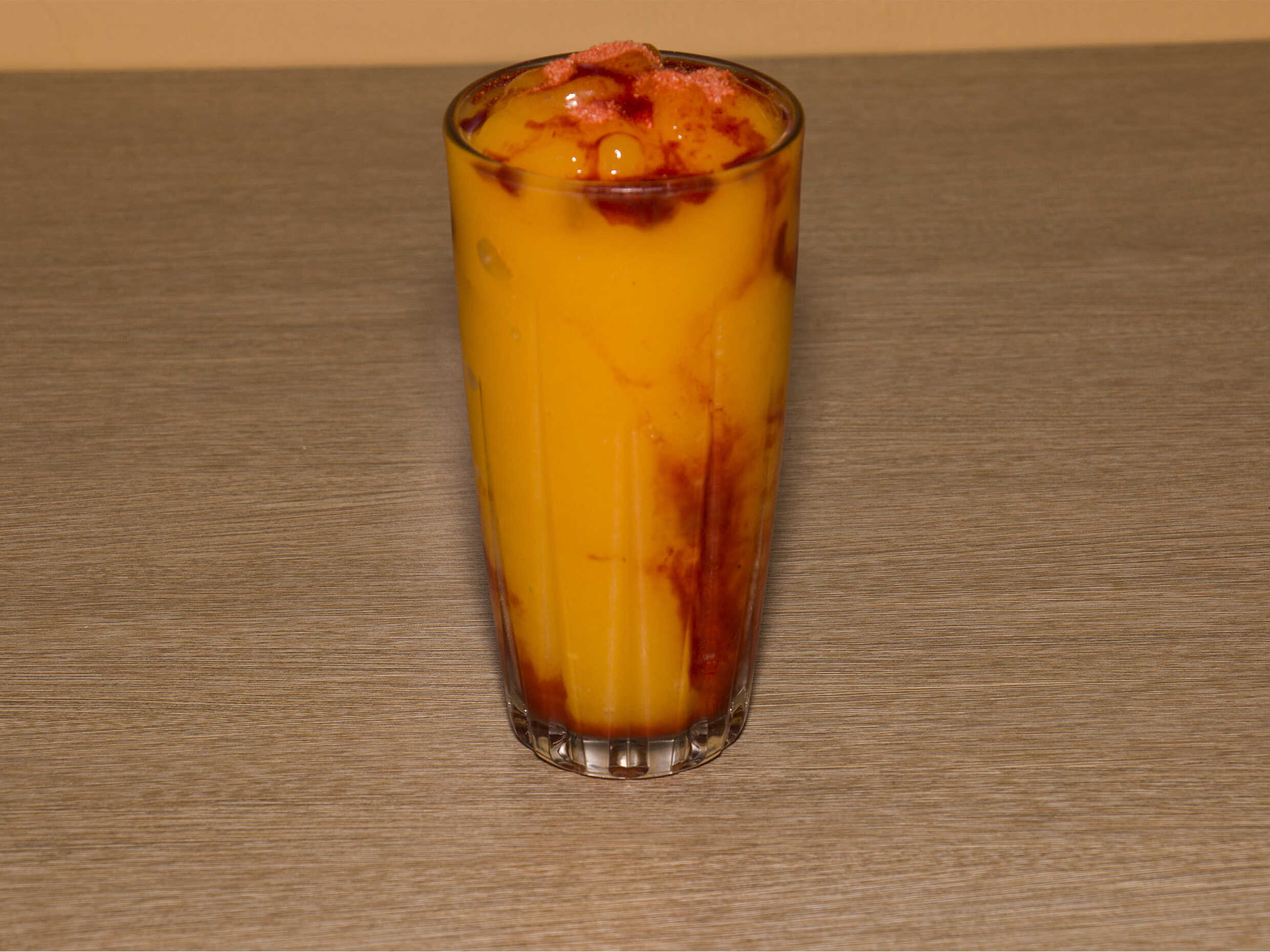 Frappé frutal con base de agua mineral, fresa, mango, mezcla de berries, piña-coco y hawaii (fresa, mora azul y piña)