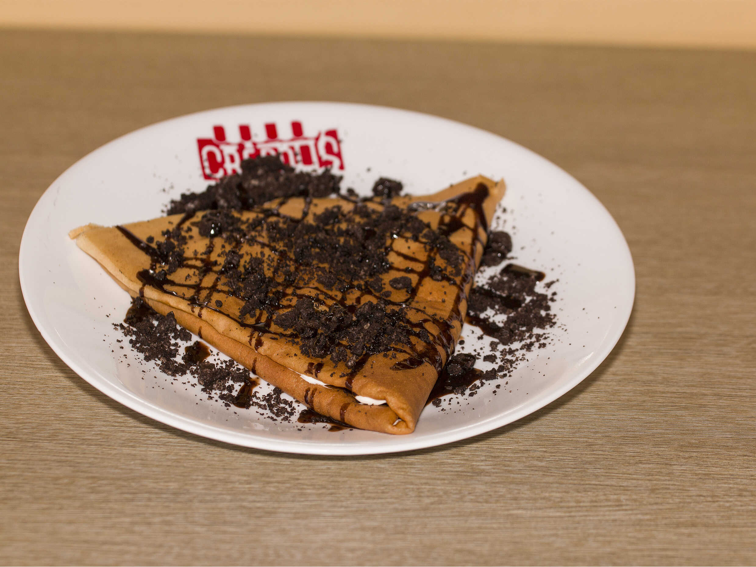 Queso Philadelphia, galleta oreo y chocolate líquido.