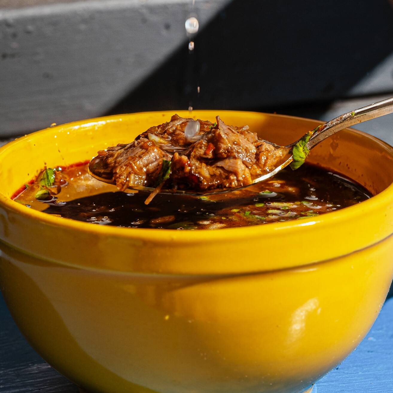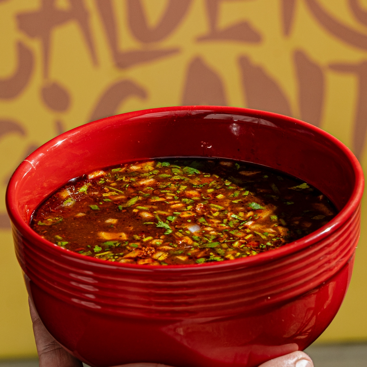 Consomé cargado de puro sabor, birria de res, mix de cebolla-cilantro y sus necesarias tortillas. ¡Ideal para acompañar otro platillo!