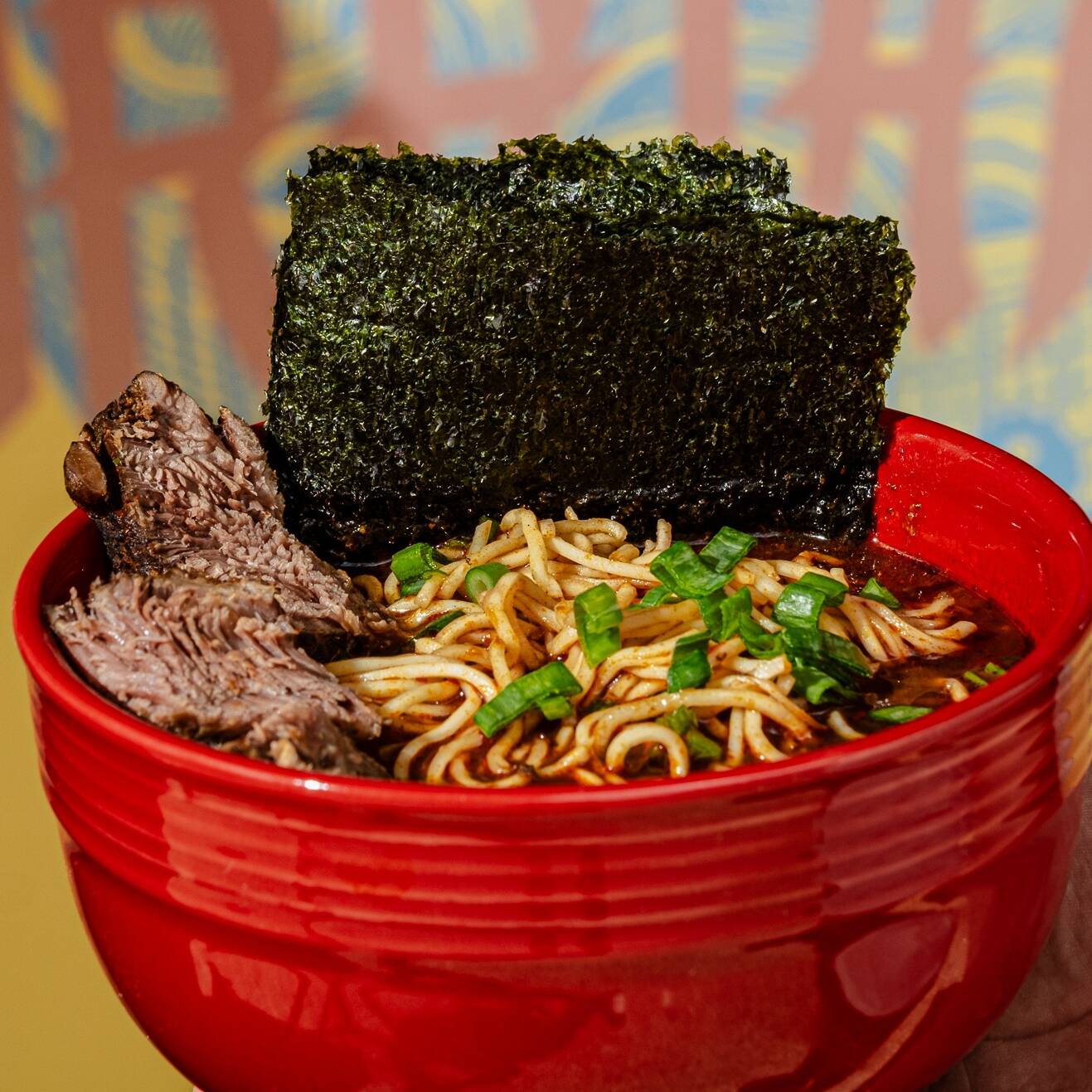 Nuestra interpretación del ramen a lo mexicano, fideos soba, naruto, alga nori, consomé y birria de res. ¡Itadakimasu!