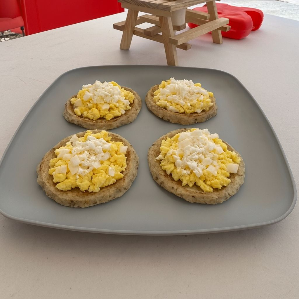 4 Sopes Preparados con Frijol, Salsa de Tomate, Cebolla, Queso Sopero y Huevo Revuelto.