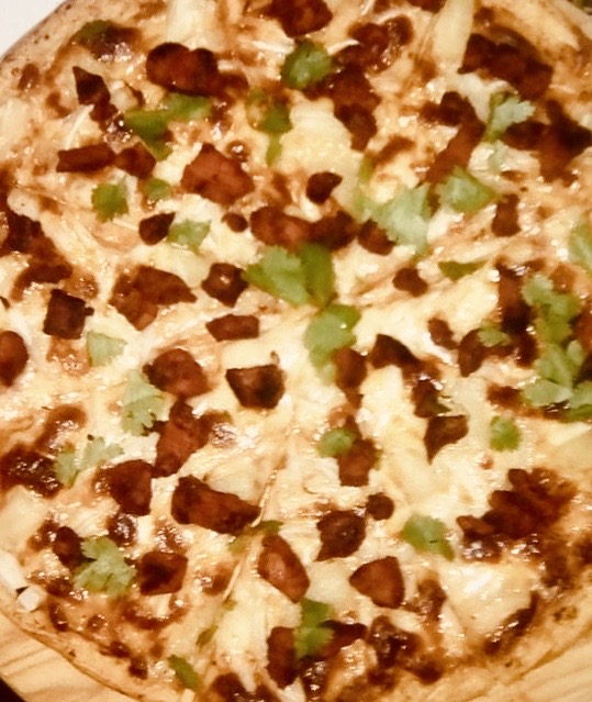 Deliciosa masa artesanal delgada, crujiente con nuestra salsa pomodoro, mezcla de quesos, carne pastor, pina, cebolla y cilantro finamente picado