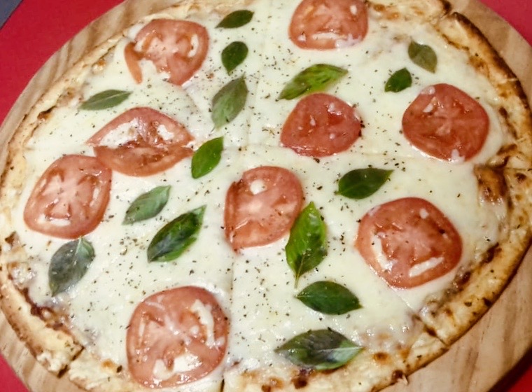 Deliciosa masa artesanal delgada, crujiente con nuestra salsa pomodoro, mezcla de quesos, tomate y albahaca fresca
