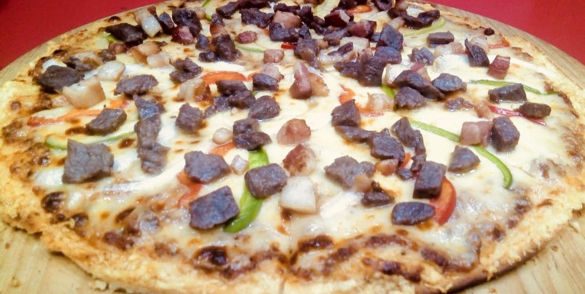 Deliciosa masa artesanal delgada, crujiente con nuestra salsa pomodoro, mezcla de quesos, arrachera, tocino cubos, cebolla y pimientos