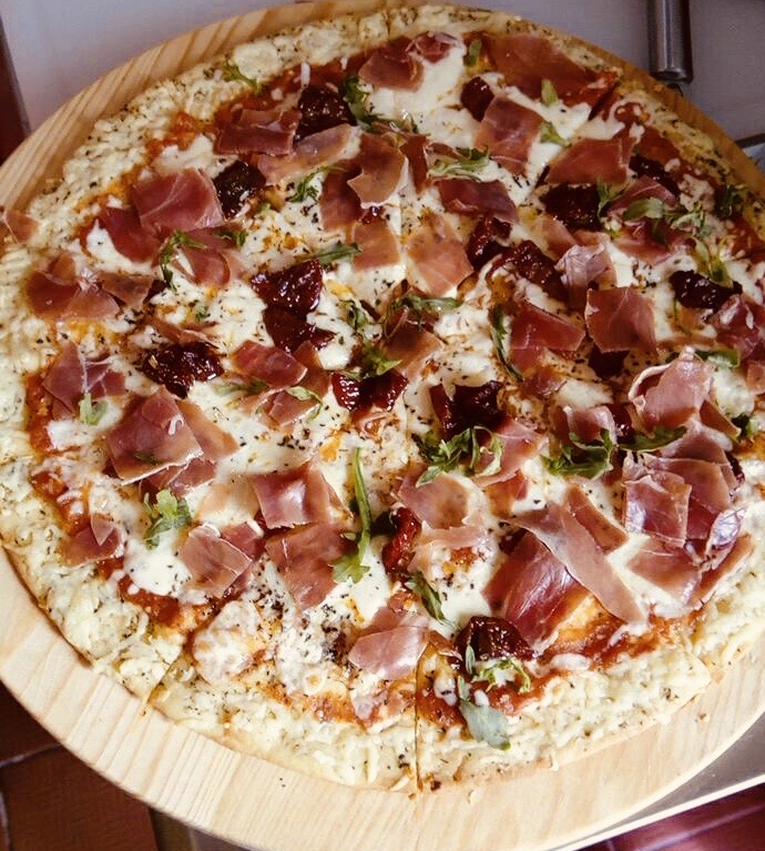 Deliciosa masa artesanal delgada, crujiente con nuestra salsa pomodoro, mezcla de quesos, jamon serrano, tomate deshidratado y espinaca fresca