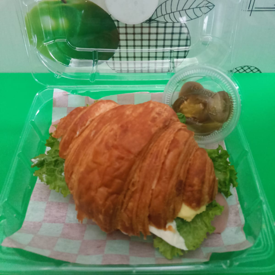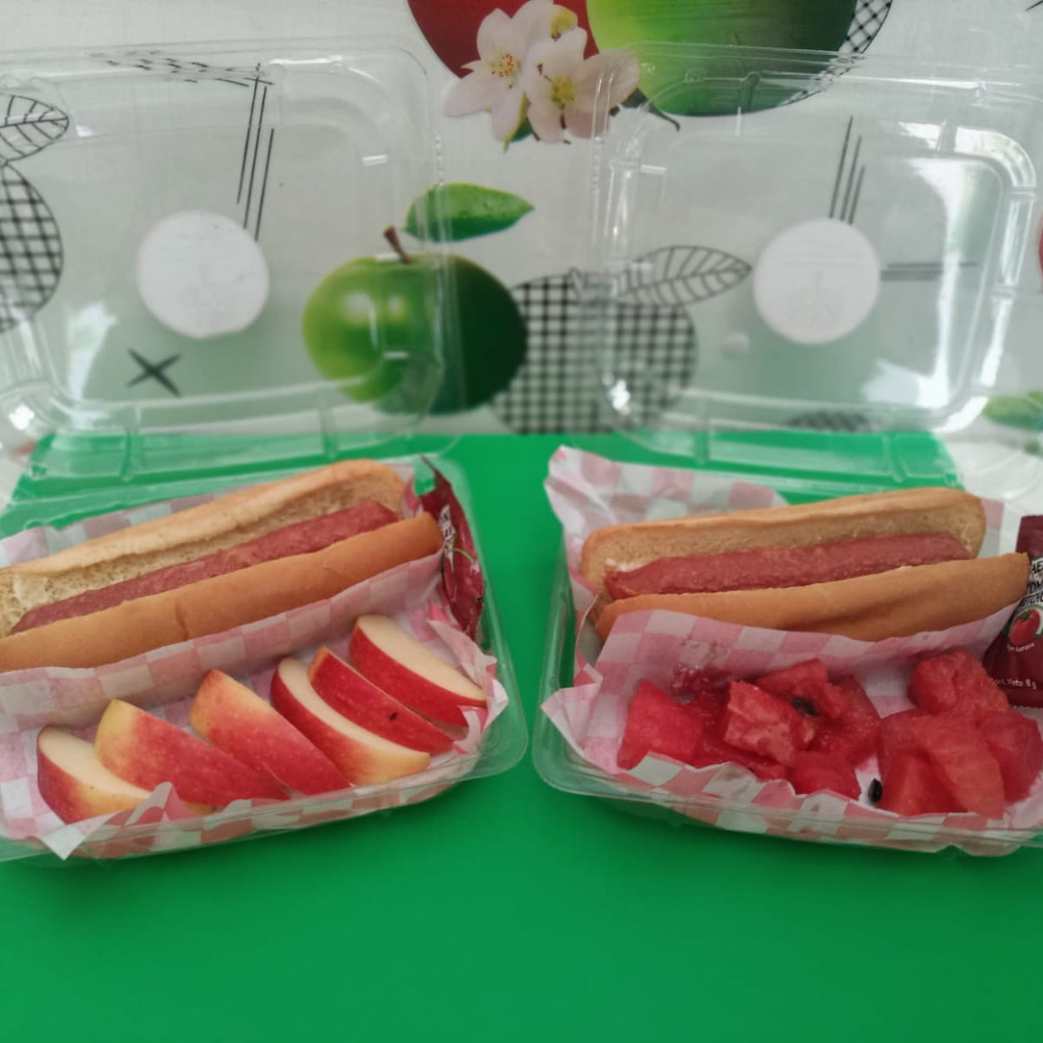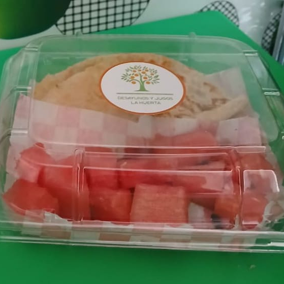 Jamon de pavo, y queso amarillo, acompañado de fruta de temporada