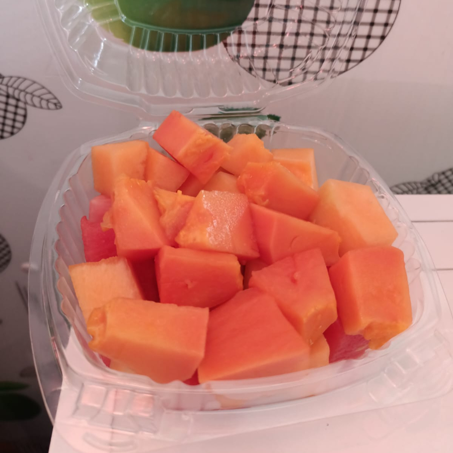 Papaya, sandia, melón y plátano, acompañados de yogurt y granola