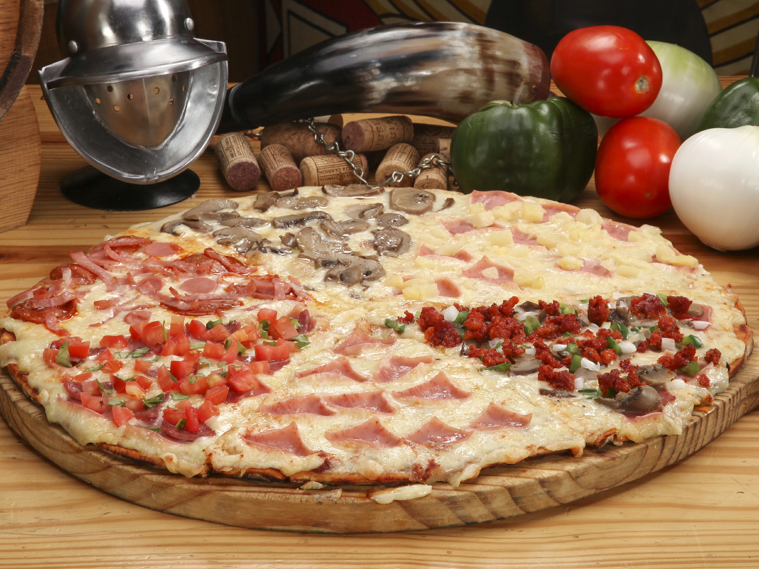 (1/4 del campo, 1/4 alpina, 1/4 combinazione, 1/4 peperoni con champiñón).