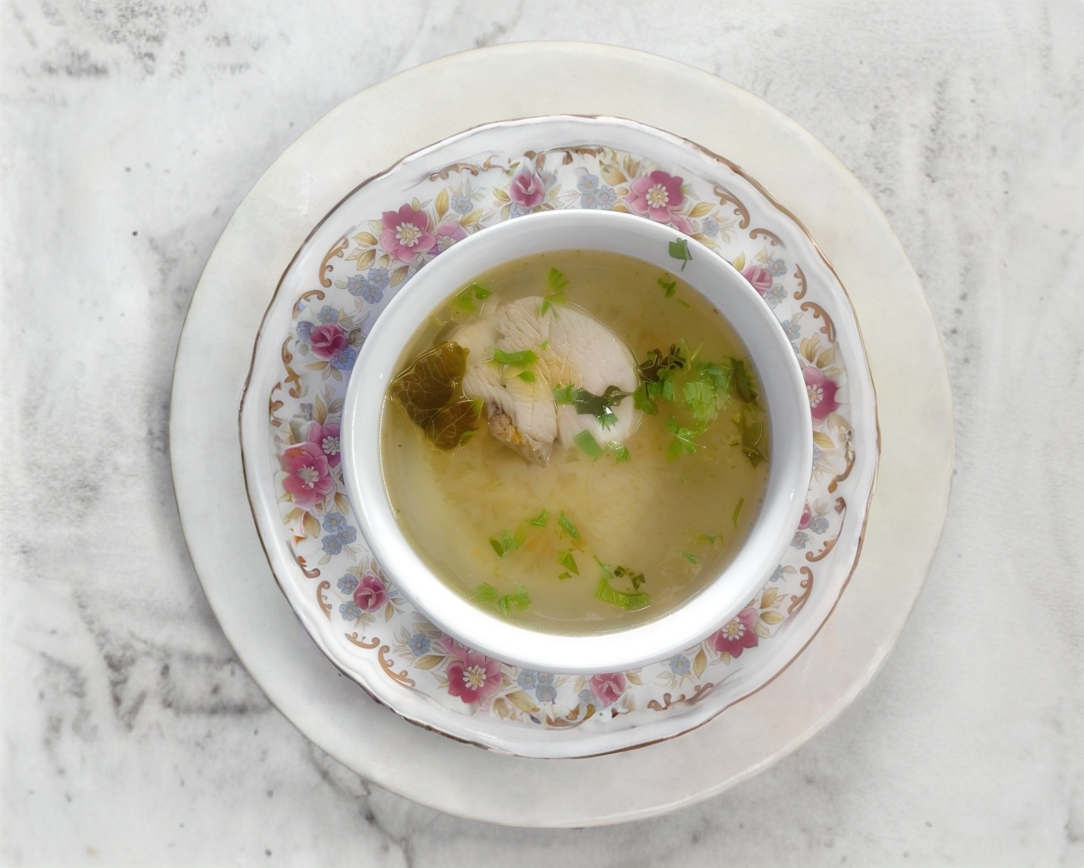 Caldo de pollo con arroz