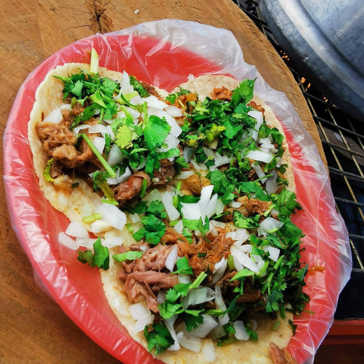 tortillas de maíz rellena de carne de res (Birria) Opcional: Cebolla y Cilantro picado