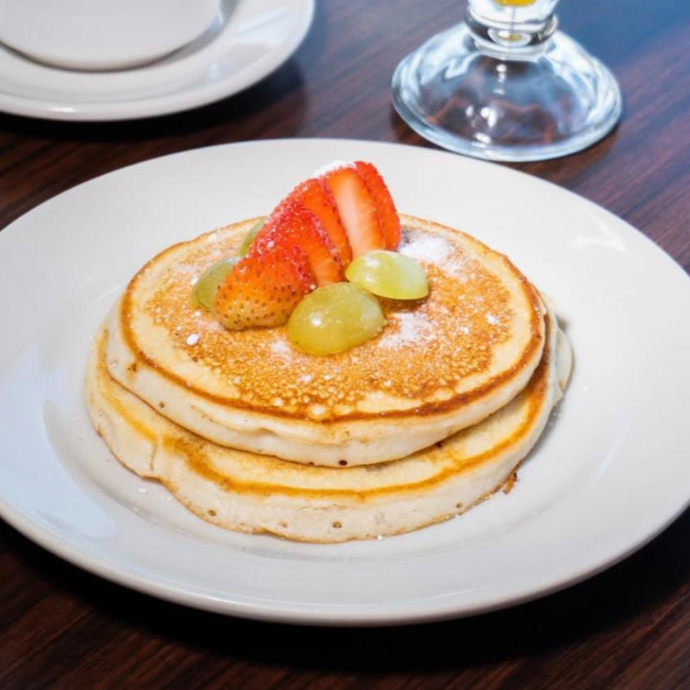 Acompañado de fresas,azucar glass y mermelada de fresa.