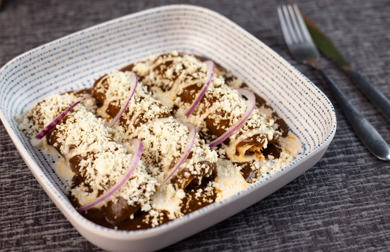 3 Piezas Mole Negro, Pollo Desebrado, Cebolla, Queso