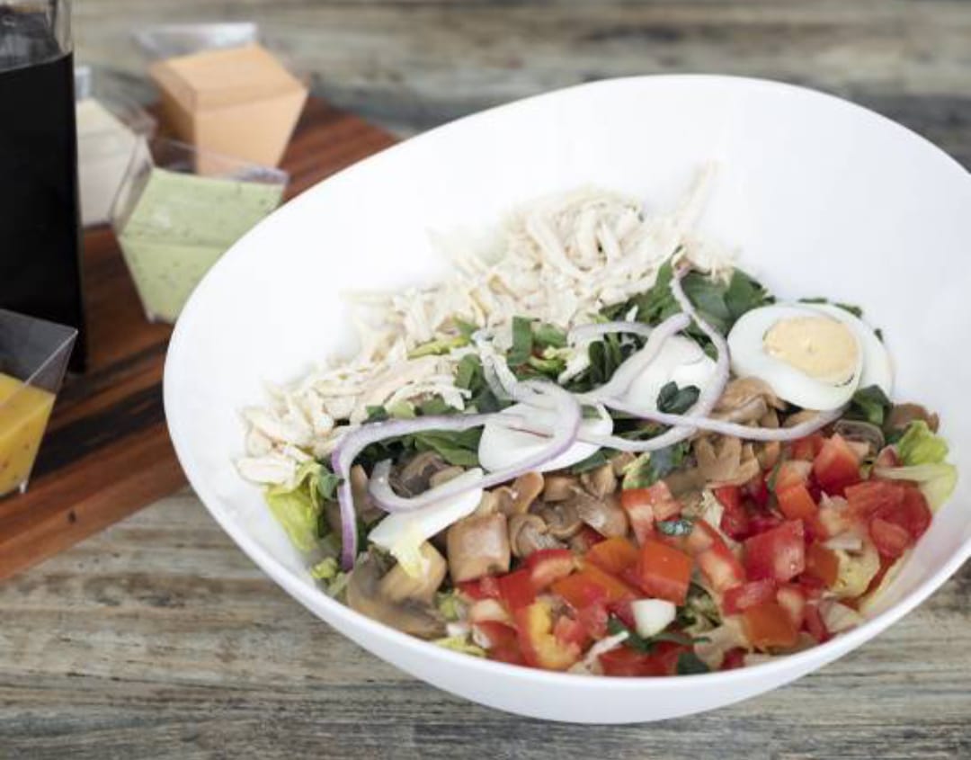 Mix Lechuga Y Espinaca Huevo Duro Tocino Pavo Pollo Empanizado Queso Blue Cheesse Perejil Aguacate